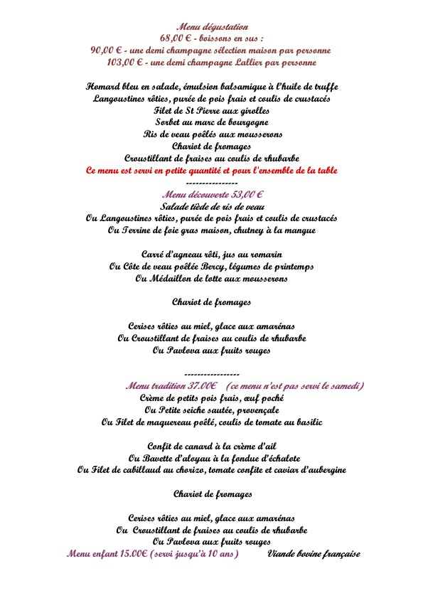 Auberge Du Tourlourou Restaurant Gastronomique Menu
